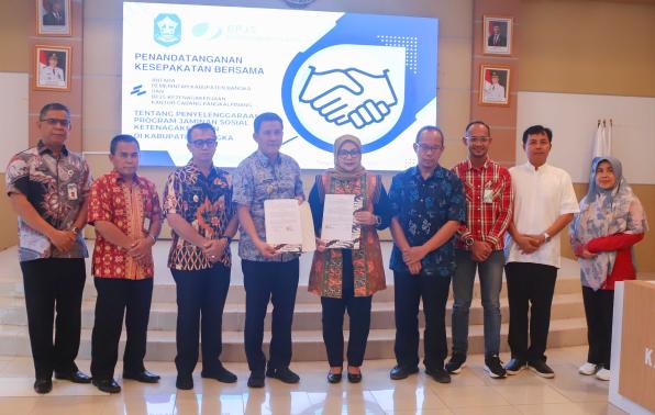 SUNGAILIAT LBC – BPJS Ketenagakerjaan Kantor Cabang Pangkalpinang melakukan penandatanganan kesepakatan bersama dengan Pemerintah Kabupaten Bangka terkait penyelenggaraan program jaminan soasial ketenagaakerjaan di wilayah Kabupaten Bangka, Jumat (6/3/2026) bertempat di Gedung Pertemuan Parai Parai Tenggiri Kantor Bupati Bangka.