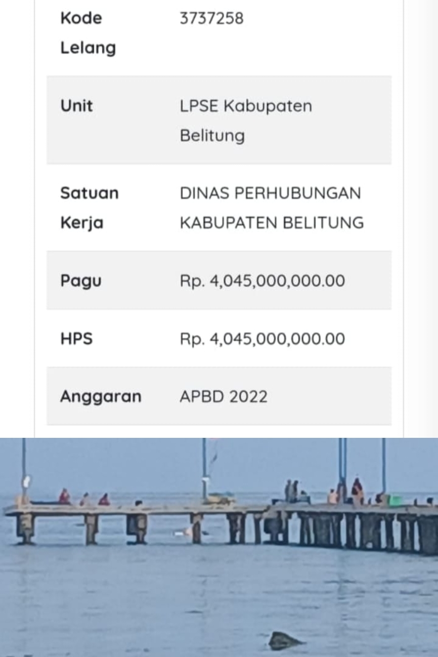 BELITUNG LBC – Dermaga Pulau Kuil yang berada di Desa Gersik Kecamatan Selat Nasik Kabupaten Belitung pada tahun 2022 mengalami rehabilitasi dengan menelan anggaran hingga 4 miliar lebih yang bersumber dari Anggaran Pendapatan Belanja Daerah (APBD) Kabupaten Belitung.
