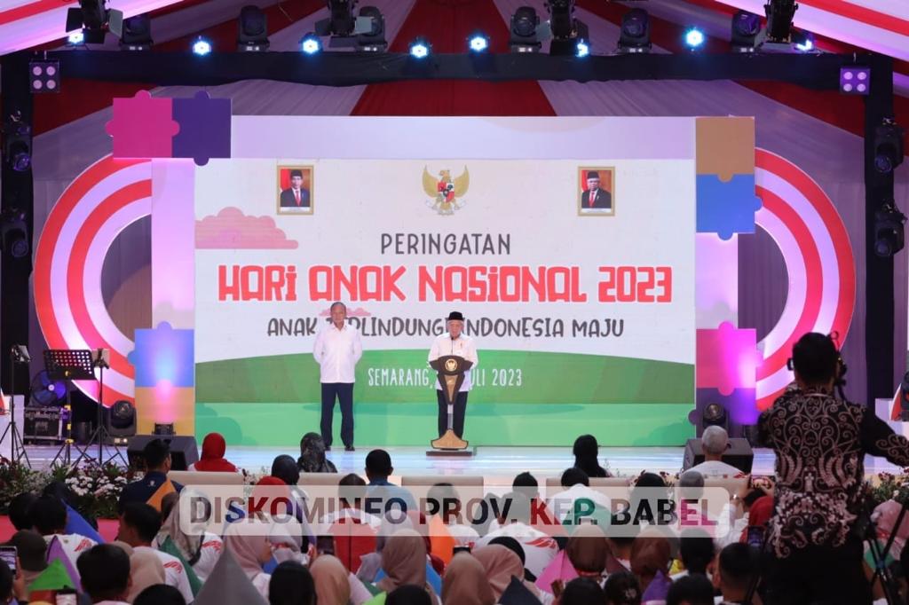 “Saya merasa bahagia dan bangga, dapat bertemu dengan anak-anakku, dan cucu-cucuku dari seluruh Indonesia. Hari ini dari kota Semarang, Saya ucapkan Selamat Hari Anak Nasional tahun 2023, untuk anak Indonesia di manapun kalian berada” sapa Wakil Presiden.