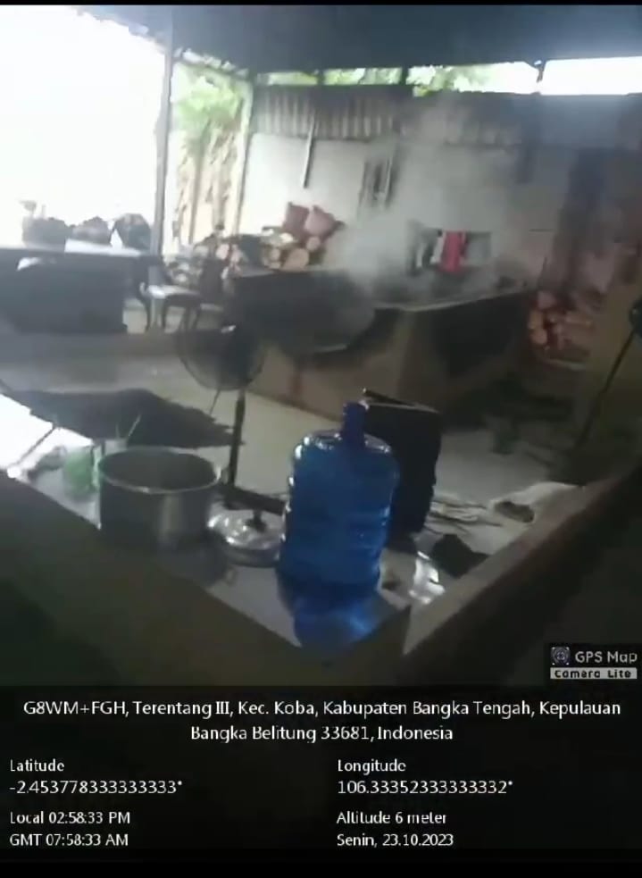 Sementara terpantau oleh wartawan Senin (23/10/2023) usaha bisnis ML yang sedang melakukan aktivitas menggoreng timah tampak kepulan asap dari tempat penggorengan yang berasal dari kayu bakar.