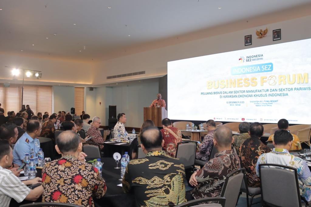 TANJUNGPANDAN LBC – Sekretariat Jenderal Dewan Nasional Kawasan Ekonomi Khusus (KEK) menggelar acara Indonesia _Special Economic Zone (SEZ) Business Forum_ tahun 2023, berlangsung di Sheraton Belitung Resort KEK Tanjung Kelayang, Dusun Timur Raya, Kecamatan Sijuk, Kabupaten Belitung, Rabu (13/12/23).