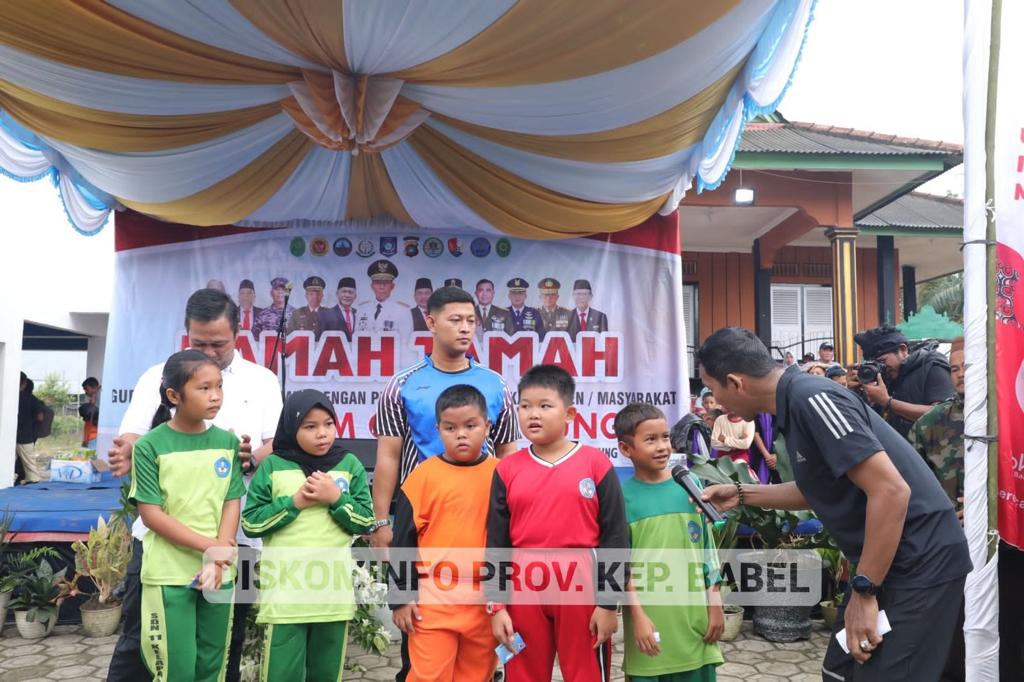 Idris (9), siswa kelas 3 SDN 1 Kelapa yang mendapat doorprize sepeda gunung mengucapkan terimakasih kepada Pj Gubernur Suganda karena dari tangannya dia berhasil mendapatkan hadiah.