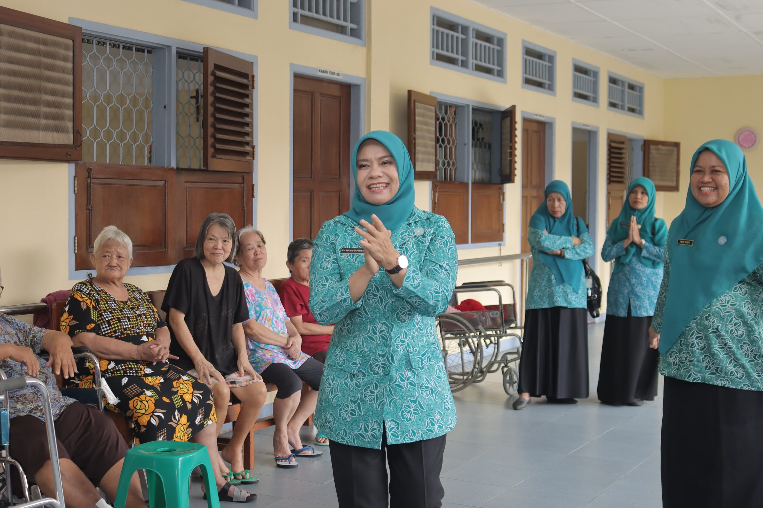 Selain ramah tamah dan pemberian bingkisan kepada lansia, Safriati Safrizal yang disambut para pengurus Panti Bhakti Kasih Siti Anna juga menyempatkan diri untuk meninjau area panti.