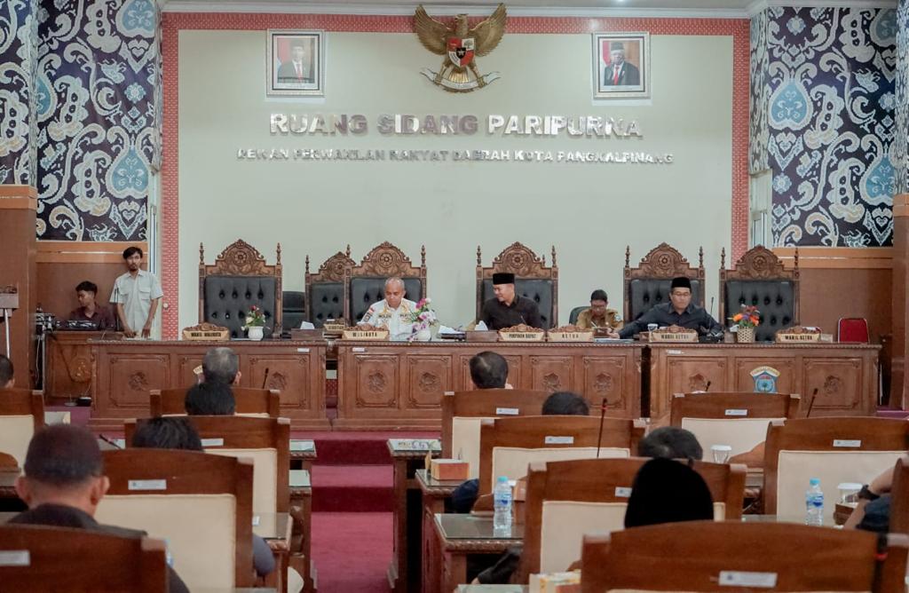 PANGKALPINANG LBC – Wali Kota Pangkalpinang, Dr. H. Maulan Aklil hadiri Rapat Paripurna Ketujuh Masa Persidangan I Tahun 2023 DPRD Kota Pangkalpinang dengan agenda pengumuman usulan pemberhentian Wali Kota dan Wakil Wali Kota Pangkalpinang masa jabatan 2018-2023 dilanjutkan Rapat Paripurna Kedelapan Masa Persidangan I Tahun 2023 DPRD Kota Pangkalpinang dengan agenda tanggapan Wali Kota Pangkalpinang atas pandangan umum fraksi terhadap 3 (tiga) Raperda di Ruang Rapat Paripurna DPRD Kota Pangkalpinang, Senin (6/11/2023).